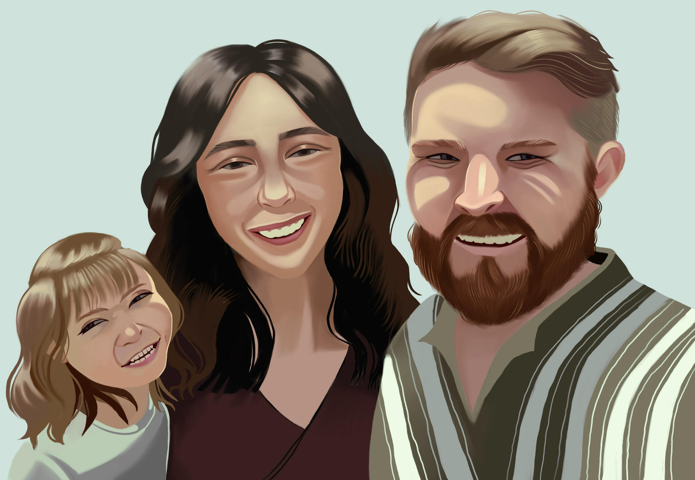 "Shelby designed and delivered a portrait of my little family as a Christmas gift to my partner. Communication with her was so easy and all I had to do was send her pictures as references for the portrait. A few weeks later, I had my portrait! A total reasonable turnaround for a custom portrait by a talented designer with a distinctive style. Shelby is kind and approachable with a super competitive rate. Thank you, Shelby!"